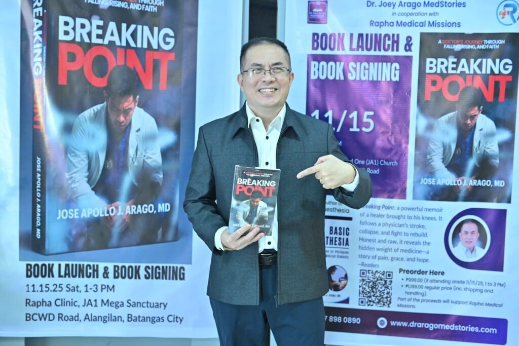 On November 15, 2025, Breaking Point: A Doctor’s Journey Through Falling, Rising, and Faith was launched and signed at the Welcome Room of the Jesus the Anointed One Church Mega Sanctuary in Batangas City.